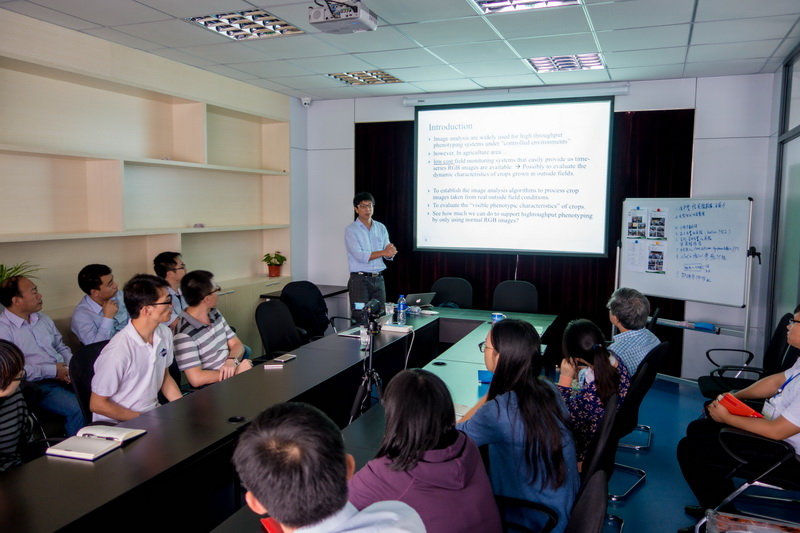 不結(jié)球白菜生長發(fā)育過程中表型變化2014年9月19日,第4次AgriPheno論壇按計(jì)劃在上海浦東孫橋現(xiàn)代農(nóng)業(yè)園區(qū)AgriPheno平臺進(jìn)行。來自東京大學(xué)的郭威博士和Kyosuke Yamamoto博士分別以“Development of machine vision applications for low cost field based high throughput phenotyping systems”和“On Plant Detection of Intact Tomato Fruits Using Image Analysis and Machine Learning Methods”為題做了報告。來自AgriPheno平臺、上海交通大學(xué)、上海農(nóng)科院、美國Spectrum公司、新加坡Manyara公司等單位的20多人參加了本次論壇。