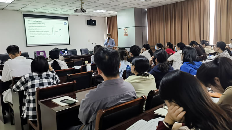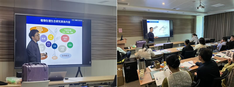 在山東農(nóng)業(yè)大學(xué)的講座中,山東農(nóng)業(yè)大學(xué)農(nóng)學(xué)院和中國(guó)海洋大學(xué)海洋生命學(xué)院的近30名師生到會(huì)參加,此外,部門(mén)師生參加了線上會(huì)議。針對(duì)部分老師主要關(guān)注夏季高溫對(duì)玉米花粉活性的影響,由于非玉米生育期,現(xiàn)場(chǎng)采用番茄花粉進(jìn)行了演示,儀器測(cè)試一切順利,感興趣的老師也進(jìn)行了儀器的親自操作。此外,講座現(xiàn)場(chǎng)還遠(yuǎn)程解答了關(guān)于花粉發(fā)育過(guò)程測(cè)試的問(wèn)題。