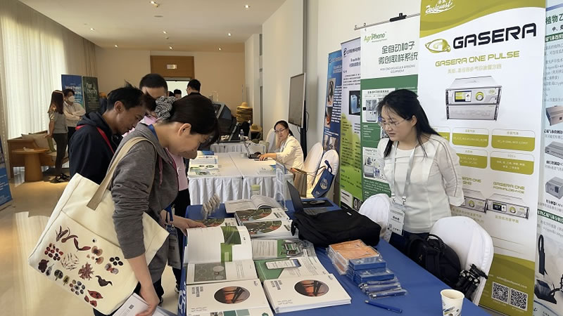 同時在會場設置了展臺,澤泉科技向參會人員展示了植物表型分析解決方案、花粉活力分析解決方案、種子質(zhì)量檢測解決方案、高通量種子微創(chuàng)取樣系統(tǒng)、植物光合生理測定解決方案、Phenoseed自動化種子發(fā)芽分析系統(tǒng)、乙烯解決方案等。