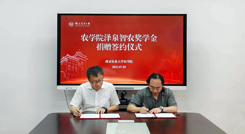 2023年7月5日上午, “澤泉智農”獎學金捐贈簽約儀式在南京農業(yè)大學農學院舉行。農學院黨委書記莊森,農學院教授姜東,上海澤泉科技股份有限公司總經理顧群、銷售經理劉琦出席捐贈儀式。簽約儀式由農學院黨委書記莊森主持。