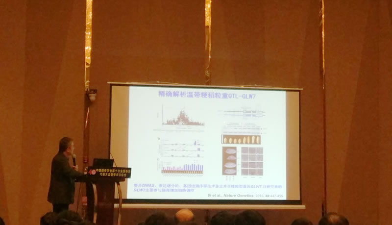 本次會議以“遺傳學(xué):繼承、創(chuàng)新、發(fā)展”為主題,一百多位院士、專家及青年學(xué)者分別在植物遺傳學(xué)、人類與醫(yī)學(xué)遺傳學(xué)、動(dòng)物遺傳學(xué)、微生物遺傳學(xué)、發(fā)育遺傳學(xué)、表觀遺傳學(xué)、群體與進(jìn)化遺傳學(xué)、基因組學(xué)與蛋白質(zhì)組學(xué)、遺傳學(xué)技術(shù)以及遺傳學(xué)教育與科普等領(lǐng)域作了精彩的報(bào)告。其中,中科院上海植生所韓斌院士此次給我們介紹的是“水稻復(fù)雜性狀和雜種優(yōu)勢的基因組學(xué)研究”,通過大樣本雜交稻材料的全基因組關(guān)聯(lián)分析(GWAS)系統(tǒng)解析復(fù)雜性狀位點(diǎn),利用大樣本雜交稻材料的復(fù)合區(qū)間作圖法系統(tǒng)解析復(fù)雜性狀位點(diǎn),從而實(shí)現(xiàn)對這些遺傳位點(diǎn)在雜種優(yōu)勢中的遺傳效應(yīng)的分析。南京農(nóng)業(yè)大學(xué)周濟(jì)教授此次給我們分享的是“從數(shù)據(jù)到信息-基于人工智能的表型組分析方法在植物研究中的應(yīng)用”,應(yīng)用多維度植物表型分析,獲取植物從細(xì)胞到組織器官再到大田生長的大數(shù)據(jù),再通過分析挖掘、性狀萃取以及生物信息學(xué)分析得到植物表型組學(xué)的分析方法。這些報(bào)告為全國的遺傳學(xué)方向的科研工作者提供了一場全面的總結(jié)與進(jìn)一步的展望。
