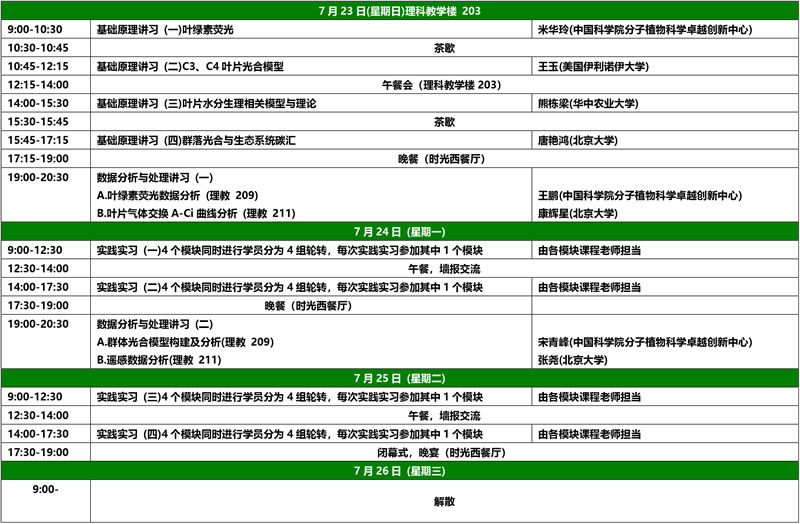 2023年7月21-26日北京,北京大學(xué)燕園校區(qū)即將迎來參加光合作用生理生態(tài)研討會暨光合作用研究技術(shù)暑期學(xué)校的老師和同學(xué)們。本次會議由中國植物生理與植物分子生物學(xué)學(xué)會光合作用專業(yè)委員會、北京大學(xué)主辦,北京大學(xué)實(shí)際承辦,中國科學(xué)院分子植物科學(xué)卓越創(chuàng)新中心、石河子大學(xué)協(xié)辦。大會邀請到了匡廷云院士、趙進(jìn)東院士、許大全教授、唐艷鴻教授、朱新廣研究員擔(dān)任科學(xué)顧問。趙進(jìn)東院士任組委會主席,王愔老師為組委會執(zhí)行主任。提高光合作用效率是解決當(dāng)前糧食、能源及環(huán)境問題的關(guān)鍵,也是未來實(shí)現(xiàn)碳達(dá)峰、碳中和的重要舉措。本次研討會旨在通過以光合生理生態(tài)研究為核心,結(jié)合分子遺傳、高光效改造、碳通量計算等方面的學(xué)術(shù)交流與技術(shù)講習(xí),加強(qiáng)光合作用的基礎(chǔ)研究,提高高光效育種與栽培、碳匯評估等應(yīng)用方面的技術(shù)水平,進(jìn)一步推動我國光合作用研究。本次活動將圍繞“光合作用研究與碳中和”這一主題,設(shè)置前沿進(jìn)展報告、光合基礎(chǔ)理論講習(xí)、實(shí)踐技術(shù)講習(xí)以及數(shù)據(jù)分析講習(xí)等內(nèi)容。講習(xí)部分內(nèi)容包括:光合氣體交換測量、葉綠素?zé)晒鈹?shù)據(jù)測量、群體光合測量、水分生理測量、碳通量觀測與計算等方面的基礎(chǔ)知識與實(shí)操,指導(dǎo)教師均為在光合作用領(lǐng)域長期從事研究的專家學(xué)者,在相關(guān)技術(shù)方面具備豐富的經(jīng)驗(yàn)。本次會議注重培養(yǎng)實(shí)操能力,期待能夠?yàn)閰藛T開展光合作用相關(guān)研究奠定扎實(shí)的理論基礎(chǔ)及技術(shù)儲備。