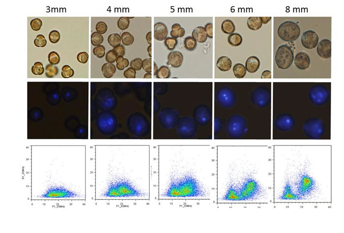 作物不同發(fā)育階段,花粉質(zhì)量不同,強(qiáng)健的花粉,是提高品質(zhì)、增高產(chǎn)量的前提。Ampha Z32阻抗流式細(xì)胞儀可進(jìn)行花粉發(fā)育階段的分析,幫助在育種和生產(chǎn)過程中篩選強(qiáng)健、高活的花粉。