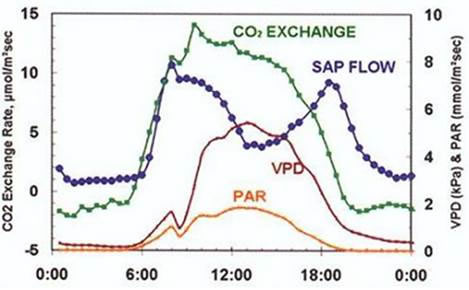 ● 通過外接傳感器可同步監(jiān)測莖流量、莖桿果實(shí)微變化、空氣溫濕度、PAR等多項(xiàng)環(huán)境和生理指標(biāo)