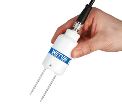 WET150的探頭可輕松插入基質(zhì)、堆肥和大多數(shù)土壤中,只需不到5秒的時(shí)間,以科研級精度測量土壤水分含量(%),溫度和電導(dǎo)率(ECp)。可配置讀數(shù)表快速單點(diǎn)測量,也可配置多個(gè)探頭與數(shù)采構(gòu)成監(jiān)測網(wǎng)絡(luò)。