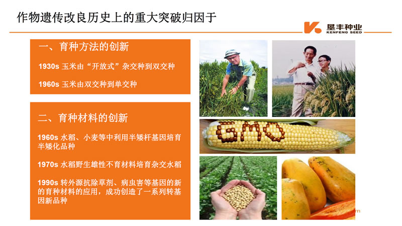 王超博士介紹了商業(yè)化分子育種流程,國際大型種子跨國公司分子育種的現(xiàn)狀和發(fā)展趨勢,并以墾豐種業(yè)公司為例闡述了分子育種平臺與技術(shù)應(yīng)用。種子是農(nóng)業(yè)的“芯片”,種子是發(fā)展現(xiàn)代農(nóng)業(yè),保障國家糧食安全的基礎(chǔ)。王超博士還詳細(xì)介紹了育種時代的變革和技術(shù)突破,提出育種創(chuàng)新主要途徑是育種方法和育種材料的創(chuàng)新。