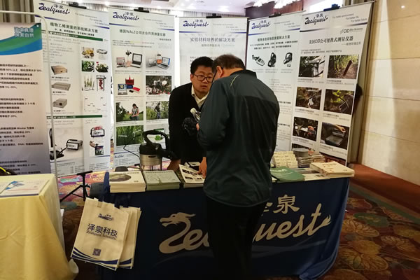 本次大會(huì),澤泉科技提供的多酚測量解決方案和乙烯測量解決方案受到嘉賓的關(guān)注,原位的測量方法可以直接測量植物病理相關(guān)的次生代謝物積累以及植物激素代謝。植物葉綠素?zé)晒獬上裨诓±韺W(xué)中的應(yīng)用為科研工作者提供了病例研究的新方法,通過葉綠素?zé)晒獬上窨梢宰R(shí)別和鑒定植物病變?cè)缙诘牡囊恍┥碜兓?,很多嘉賓表現(xiàn)出了濃厚的興趣。