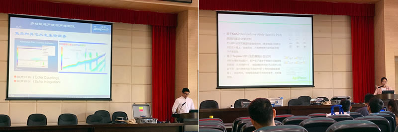 本次研討會圍繞5個主題:1.調(diào)制葉綠素?zé)晒鈨xPAM基本原理及應(yīng)用;2.Xylem分析儀器應(yīng)用;3.藻類野外現(xiàn)場監(jiān)測設(shè)備應(yīng)用簡介;4.高通量基因分型解決方案;5.回聲探測技術(shù)及其在魚類、沉水植被、底質(zhì)分類研究中的應(yīng)用。會議期間,向參會用戶展示了調(diào)制葉綠素?zé)晒鈨xPHYTO-PAM(調(diào)制葉綠素?zé)晒鈨x)、DIVING-PAM(水下調(diào)制熒光儀)、DT-X(多功能回聲探測儀)、EXO(多參數(shù)水質(zhì)測量儀),并與感興趣的參會人員交流了相關(guān)設(shè)備的使用技巧和心得等,現(xiàn)場解決了用戶的儀器使用、數(shù)據(jù)處理疑難點等問題。